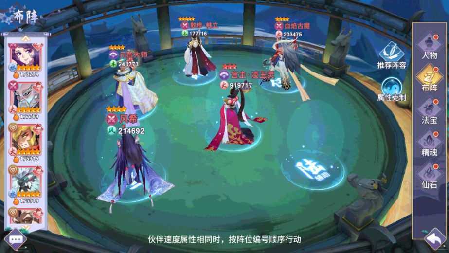 敲黑板!重要的知识点道友们要记牢了!前面九章的主线任务只要跟着引导走基本上都是随便通过的,而从第十章开始,诸位道友在做主线剧情时就应当考虑己方阵容的强度和合理布阵了,稍不留神就有可能翻车。在此小编强烈推荐由散修.韩立、风希、血焰古魔、元智大师、宫主.凌玉灵5名伙伴组成的3输出、1奶妈、1辅助的“万金油”阵容,这套阵容能扛能打,不说无敌于天下,至少通关主线剧情任务还是绰绰有余的,同时在PVP对战模式中也有不错的阵容强度。