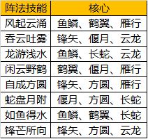 ↑ 阵法技能所对应的阵法核心