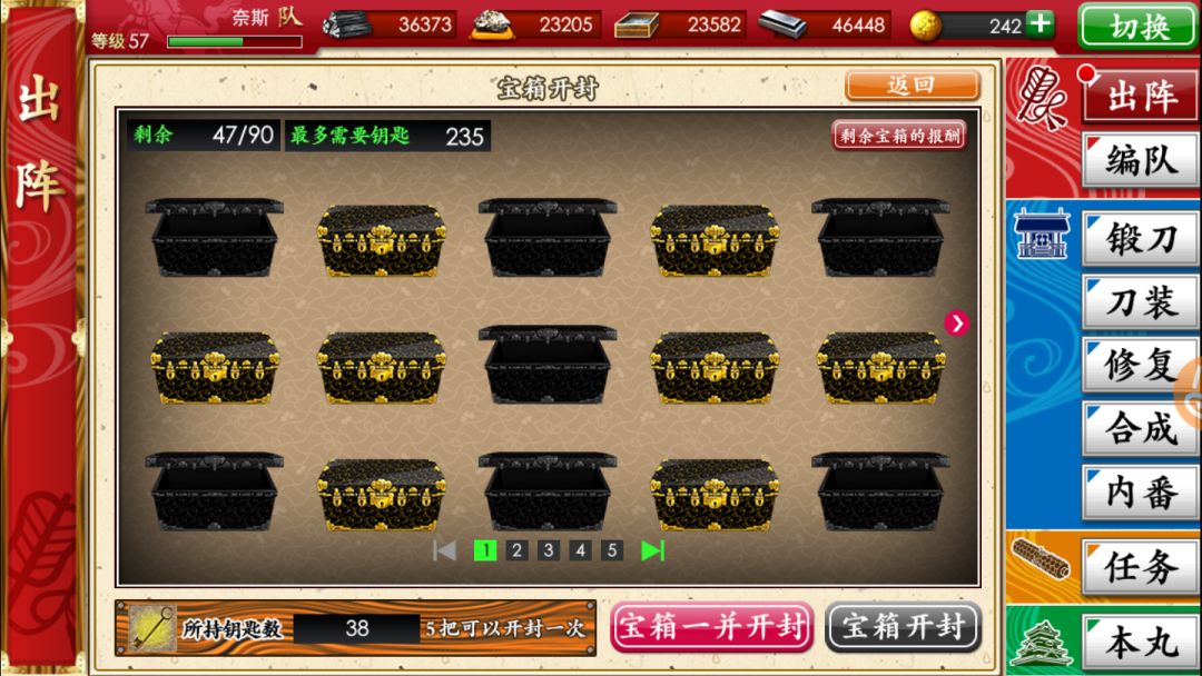 每5把钥匙可开启一个宝箱,建议前期不要把攒的钥匙一次全开,万一较早开出下一宝箱的钥匙的话会浪费资源,可根据自己的喜好玄学开箱。
