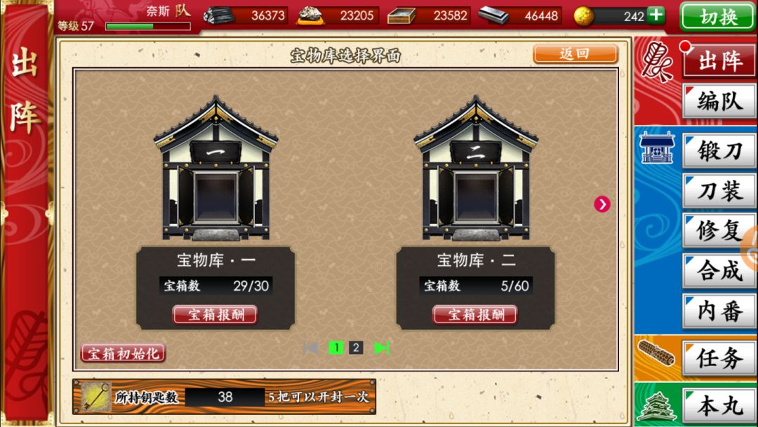 活动地图内获得的钥匙用于宝物库的宝箱开封,共有四个宝物库,在当前宝库内获得下一个宝库的钥匙后可解锁下一个宝库。这里活动奖励的刀刀分别在第三和第四个宝库。