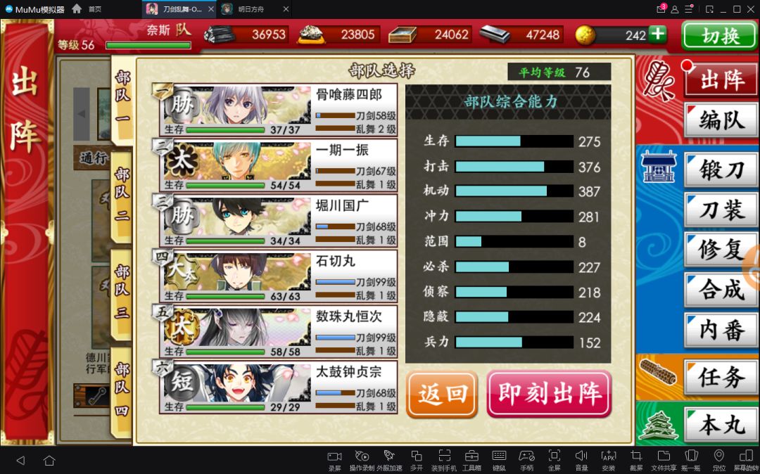 像我一样正在练短刀和胁差急需推6图的婶婶可以把自己需要刷级的刀刀丢进去刷,经验回报十分可观!(大拇指)