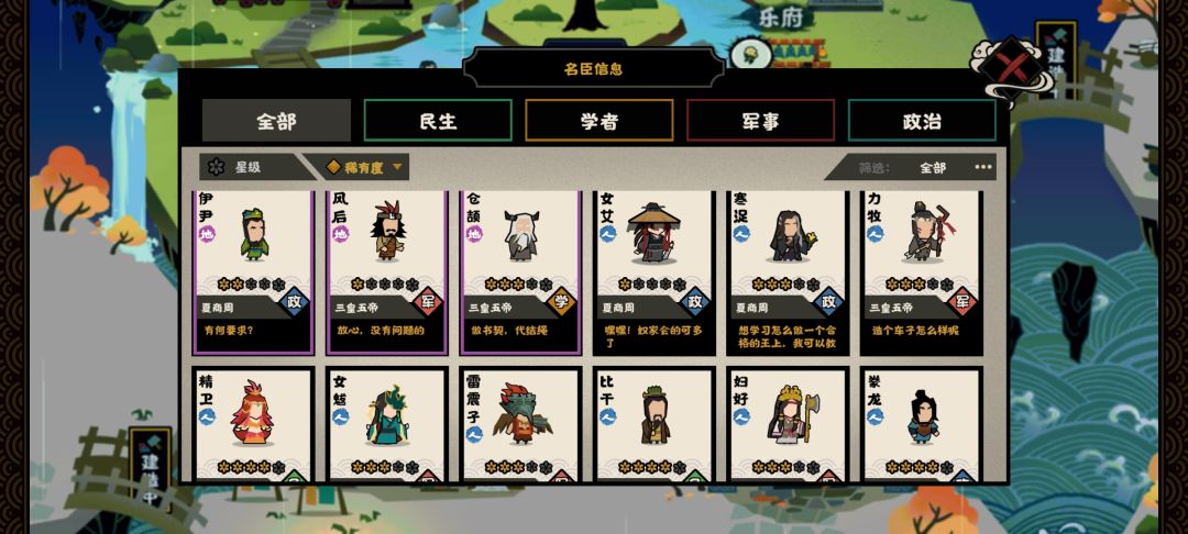 能够反复降低腐败度的名臣目前只发现一个比干(到后面唐说不定魏征也行),除此之外都是一次性降四五点腐败的基本没啥用。