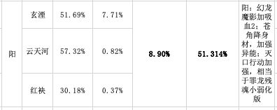 那么接下来讨论玄湮苟阳,血阳的问题。分析完云天河后,你是否明白官方没有动刀琼华的原因。首先,截止t3,玄湮的胜率为正常,但单主将占比是高的,只有幽莲的12.37%超过他,而第三名是灵儿7.06%。占比高的原因自然是玩家认可苟阳的打法,还包括血阳的打法。当然,对手会吐槽这是自闭卡组,那我就不提部分玩家喜欢,对手遇到了会讨厌苟阳这个问题。在云天河处于如此尴尬境地,且玄湮没有双高问题的情况下,直接动刀会导致阳属性胜率和占比双双下降,变成双低数据。这种情况只在t3周期的风属性上出现过,但风有相对平衡的主将占比,即可以三主将反复横挑,而阳只有玄湮上的了台面,砍了就没了。所以在苟阳的胜率提升到高胜率之前或者在云天河能够贡献占比之前,不可能削弱苟阳(当然如果要削弱肯定是削弱琼华的,类似当初给凝冰决加费一样,一定是削弱超模卡组的超模单卡)。