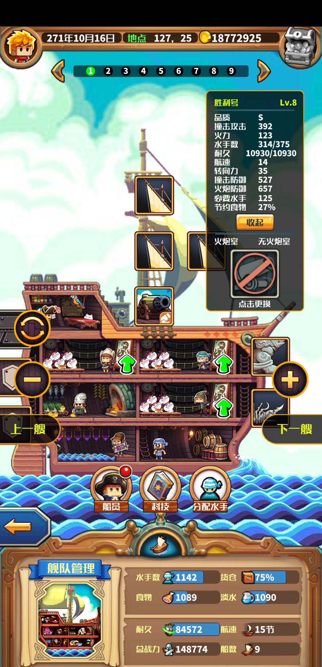 最后再唠叨一句,胜利号还是要搞两艘的,一艘给贝爷,一艘给主角的剑客基友,资源也尽量都给到位,至少水手长要给最好的。打最终boss,打的差不多的时候,本以为自己的队员也该都成炮灰了,又是自己面对一群敌人时,惊奇的发现我方两艘胜利号居然还在敌群里自由穿梭,如入无人之境,还时不时来个技能,打到敌人只剩最后一艘船时,居然还能剩大半管血,我不得不感叹你们是真的肉啊,基本都是靠他们卡主敌舰位子,然后我在边上猥琐放技能轻松胜利。