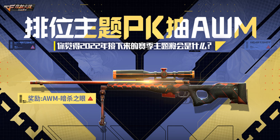 只需要在这里,分享你对今年排位赛季的看法,即有机会将AWM-暗杀之眼(永久)带回家!