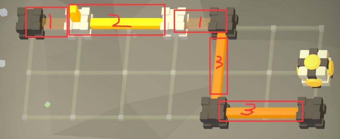 暗色3部分为未激活的管道,表示当前无法操纵它们,如需要操作他们,则需要移动已激活的管道和他们连接,然后即可将他们激活和移动。