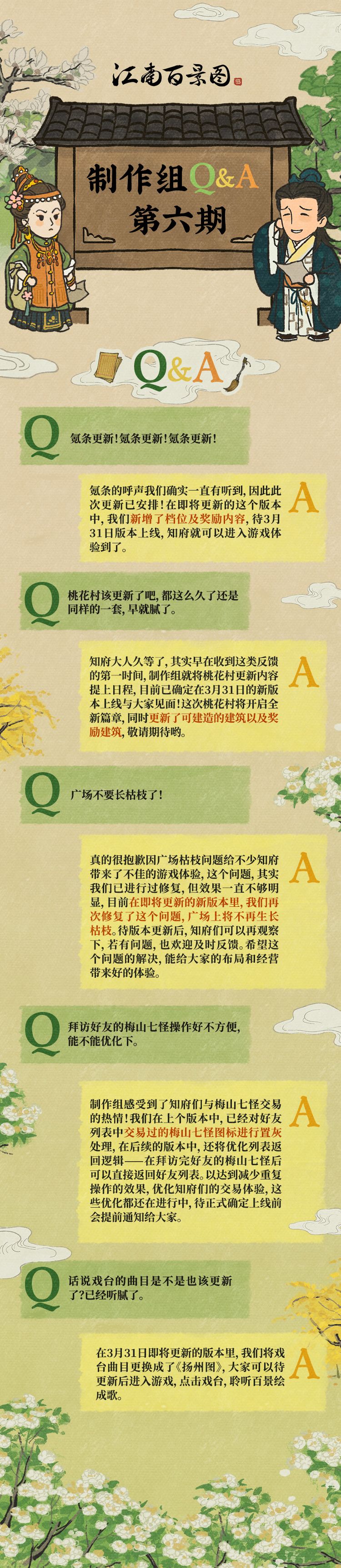 知府大人们下午好,《江南百景图》制作组问答第六期来了!