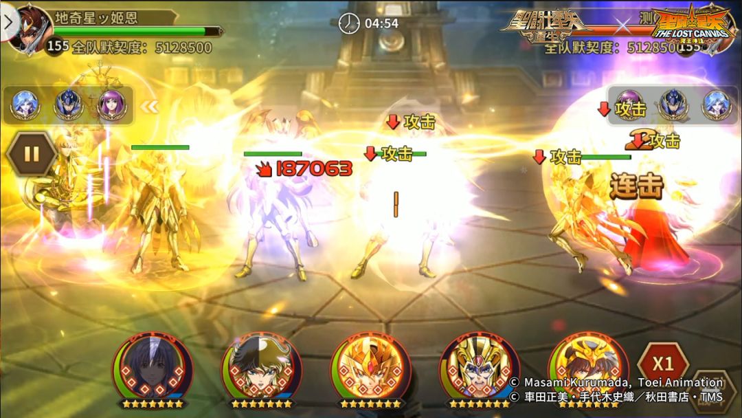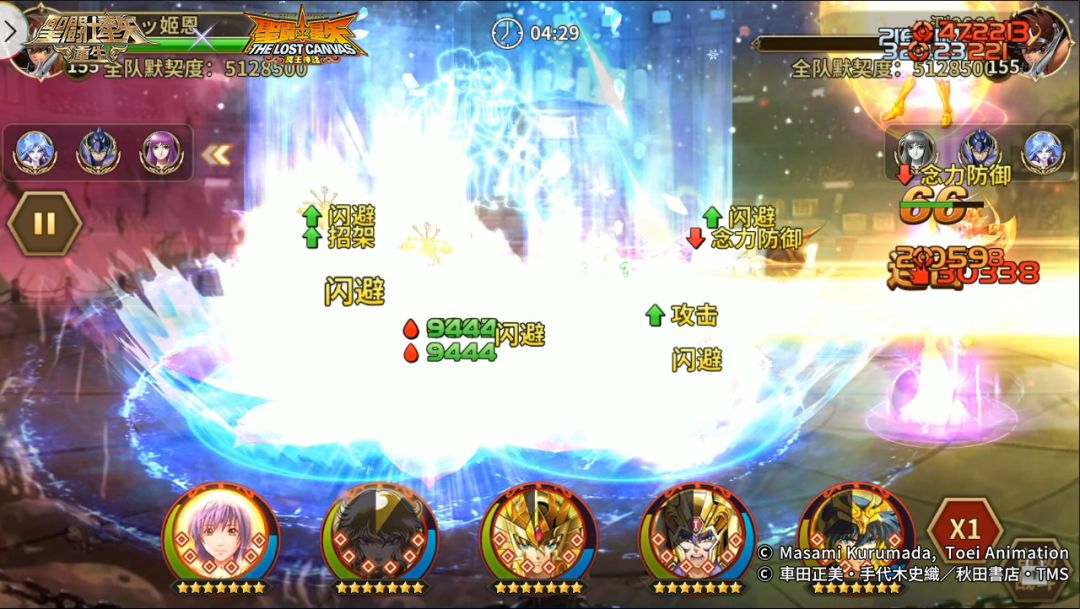 对方阵容:传说圣斗士·紫龙、神圣双子座·撒加、神圣处女座·沙加、神圣水瓶座·卡妙、阿赖耶识·沙加