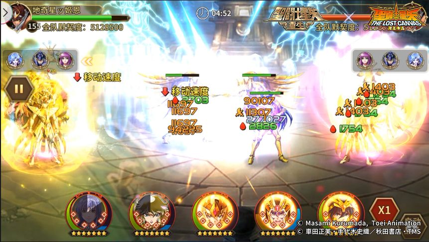 趁着敌方传说圣斗士·紫龙被女神·萨沙必杀技命中处在晕控状态,我方抓住时机攻击敌方。