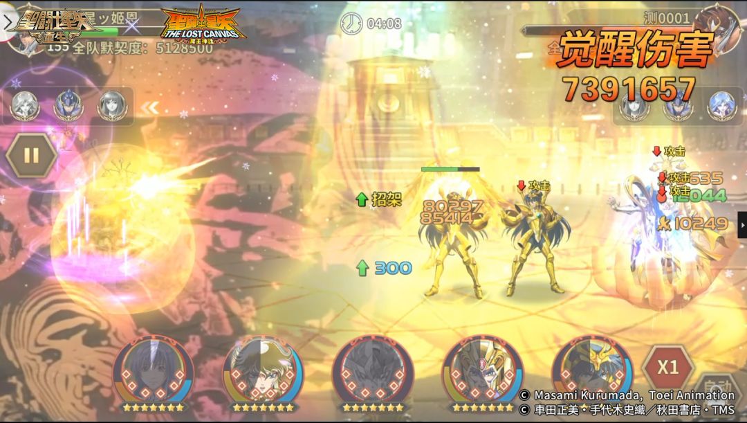 4分08秒,敌方传说圣斗士·紫龙释放觉醒技命中我方神圣处女座·沙加,打出了7391657伤害,直接阵亡,随后触发了雅典娜守护。