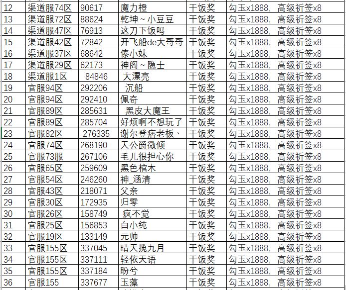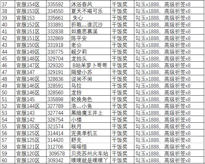 3、干饭奖:我们会为所有参加发帖的萌主(已获得人气奖与幸运奖的萌主,将不会收到干饭人奖励),送上一份干饭人奖励,勾玉x1888,高级祈签x8