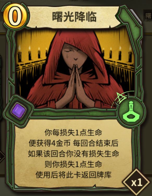 曙光降临:卡牌效果“每损失1点生命便获得3金币”变更为 “每损失1点生命便获得4金币”;