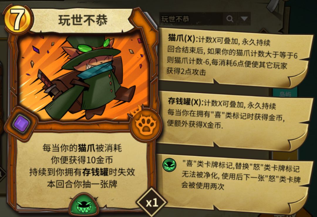 玩世不恭:出牌消耗金币数从“5金币”变更为“7金币”;
