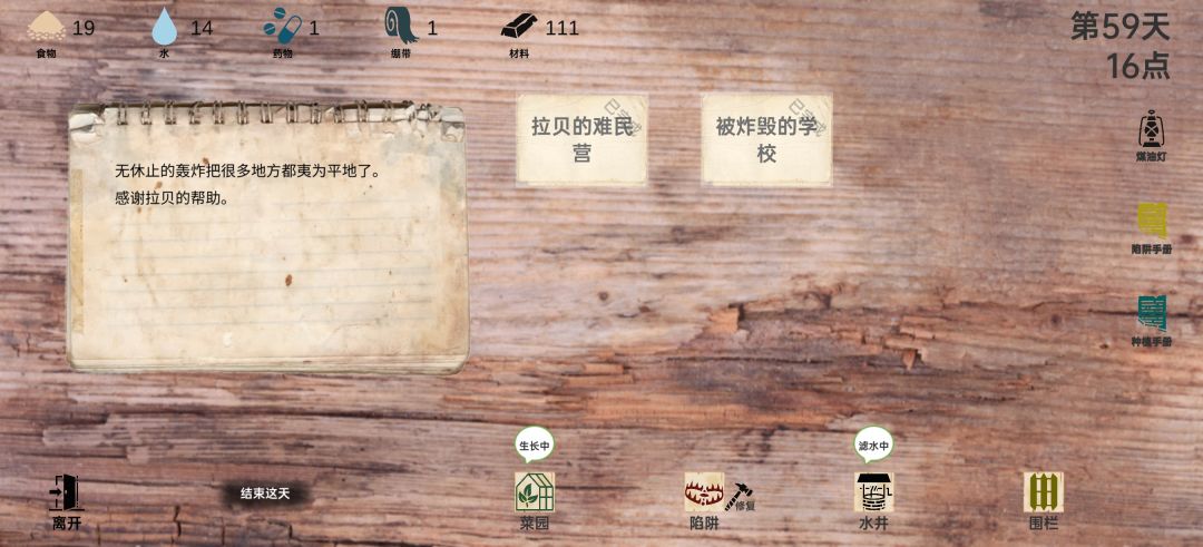 3. 栅栏:最好沦陷当天就敲上,不然会陷入物资丢失的死循环