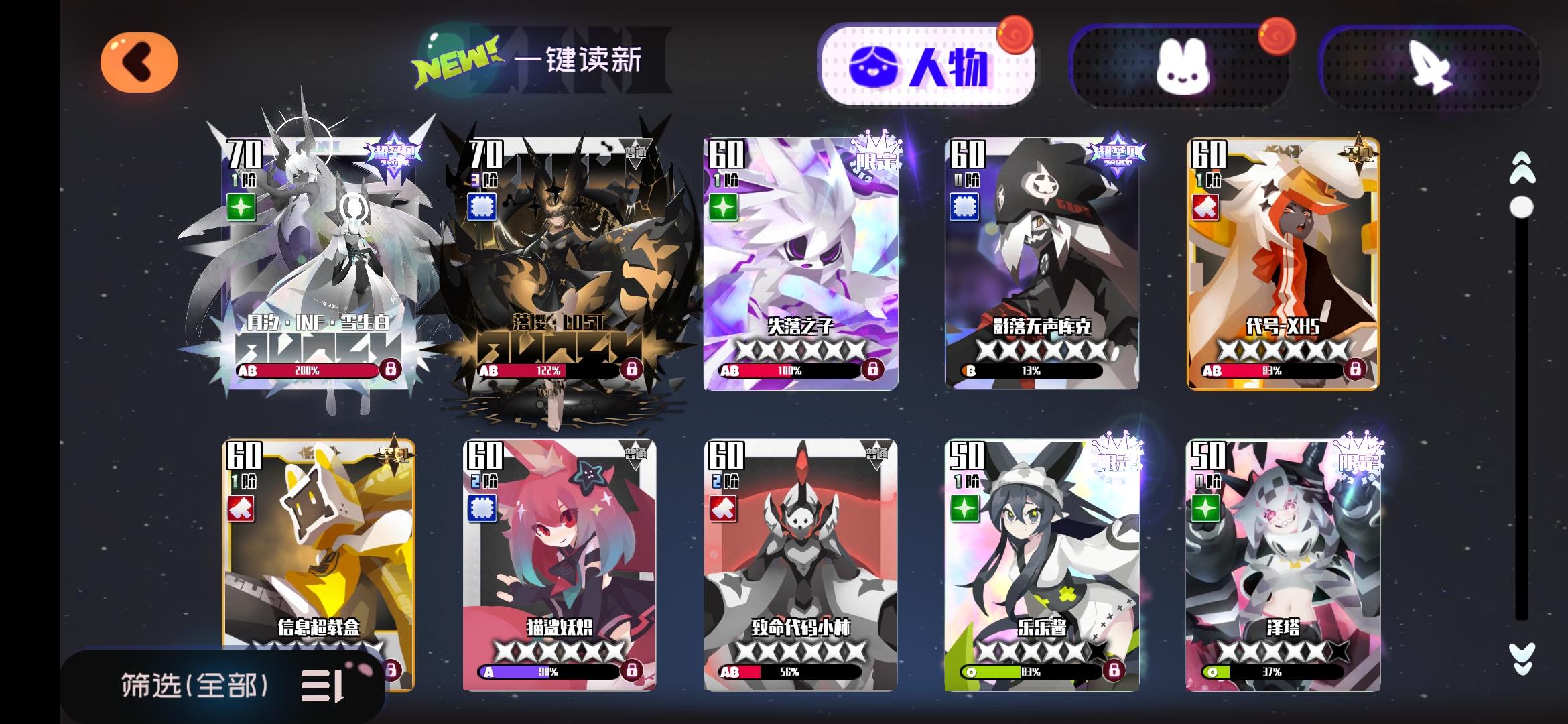 这个游戏推图其实大部分靠大佬发力,大佬发力,都有得吃,哈哈哈哈哈啊哈哈哈,只要练了上面那几个主要的,其他其实XP练卡根本无所谓,结合新手池,阵容基本就是一个主C两个辅助,结合新手卡池,小粉狐,鱼子(黑的)还有很多人问月汐能不能C,这样说,7星以前不能,前期辅助可以C不行,你也大概率打不过材料关,所以先放着。