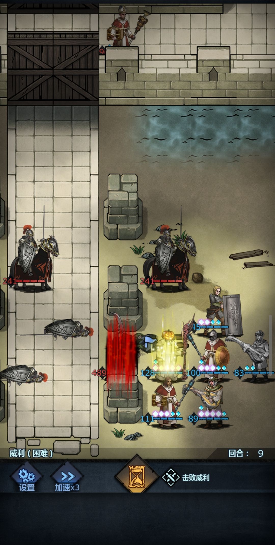 4.第二阶段威利攻击火德,火德复活反手一个火。伤害就打出来了。飞鹰诗人再如法炮制一阶段,主教继续给火德激励叠叠乐,或者有小喽啰站在威利旁边也可以借有小兵挂火🔥输出。