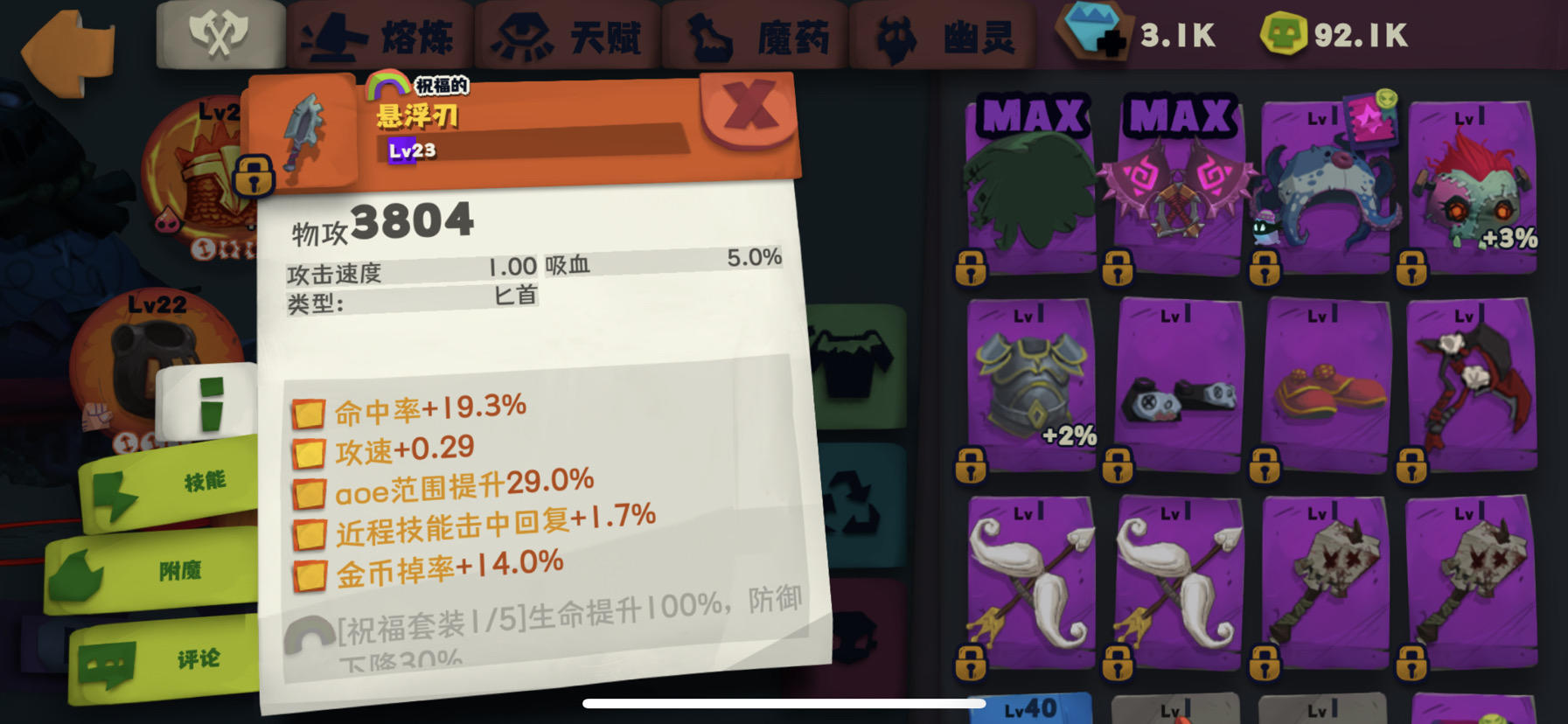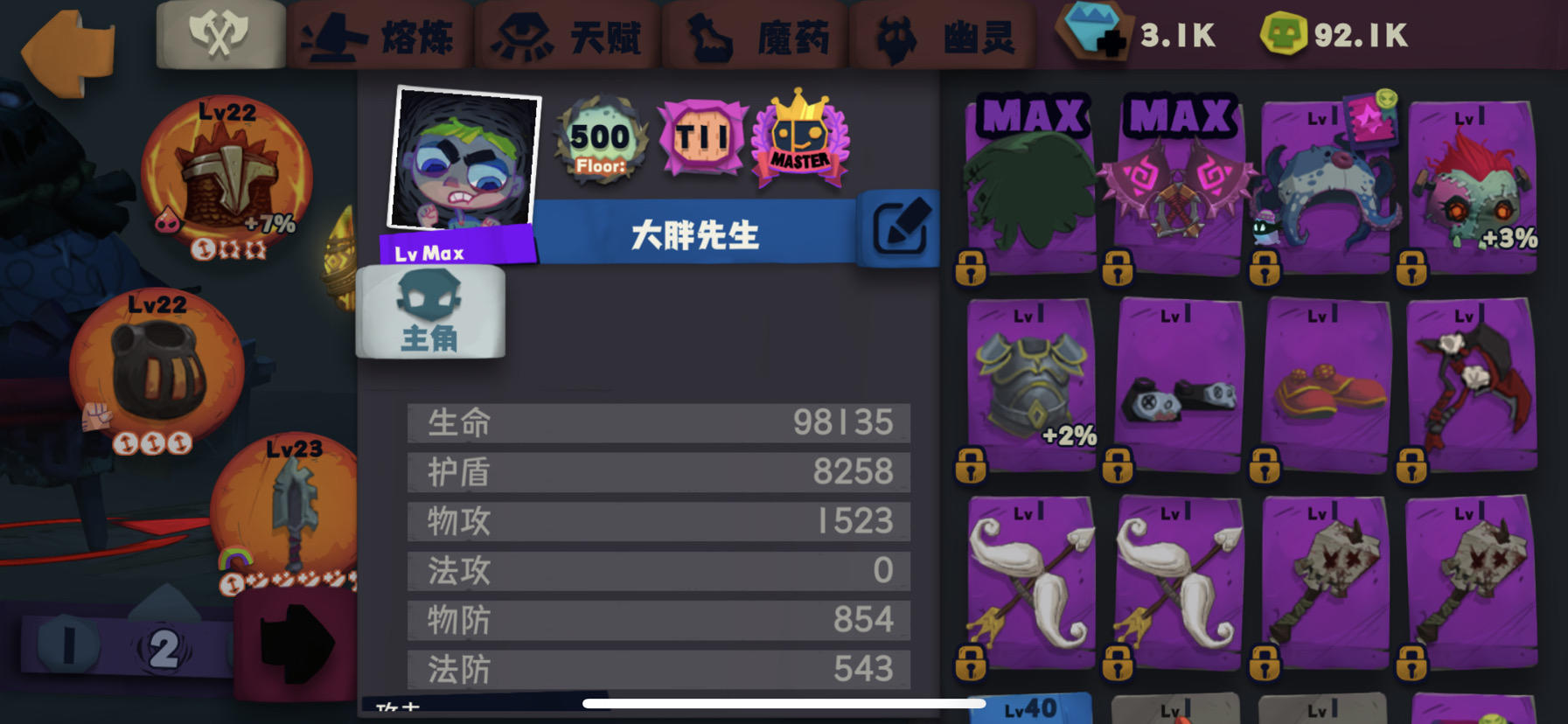 装备目前如图片这样子,手上还有一套炸猪和一套冰刀锋紫色的,用的炸猪到了500,现在用悬浮刷异界,但是491-500悬浮打不过进入就死,这个情况我应该怎么办呢?幽灵这块还没弄明白,刷不了楼层也抓不到幽灵。请大佬帮帮我。谢谢了