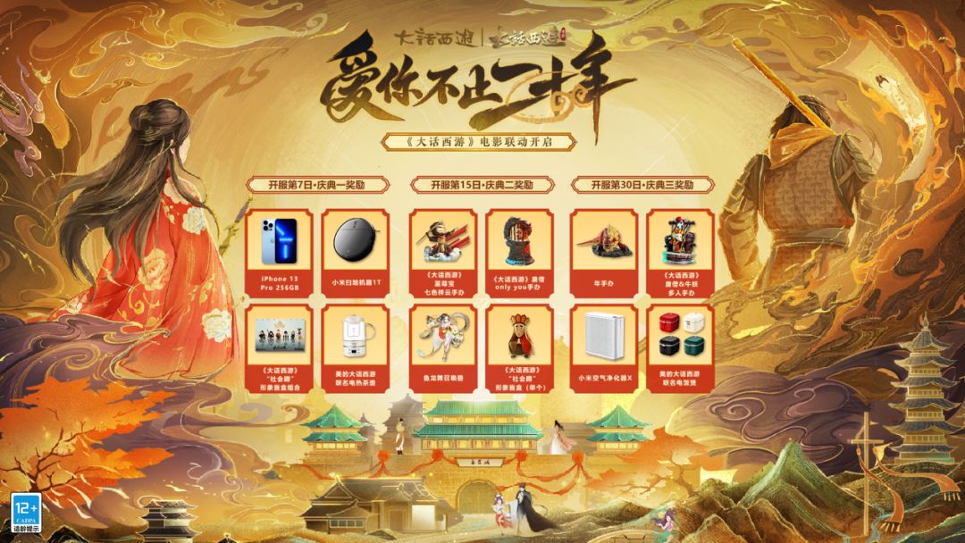 在开服第30天的庆典三中则将抽出:年手办、《大话西游》唐僧&牛妖多人手办、小米空气净化器x美的大话西游联名电饭煲等实物好礼!