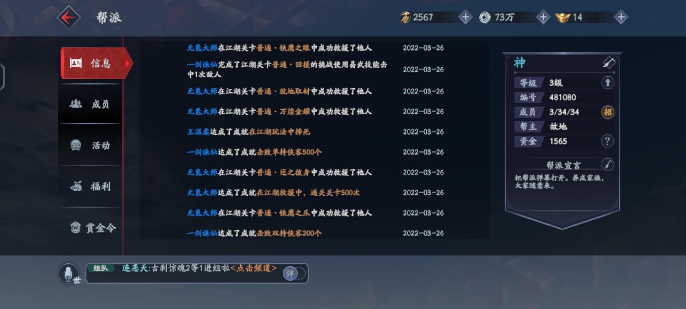 我说嘛,怎么找不到我获取称号的时间,原来在帮派里有提示记录。补一下图。