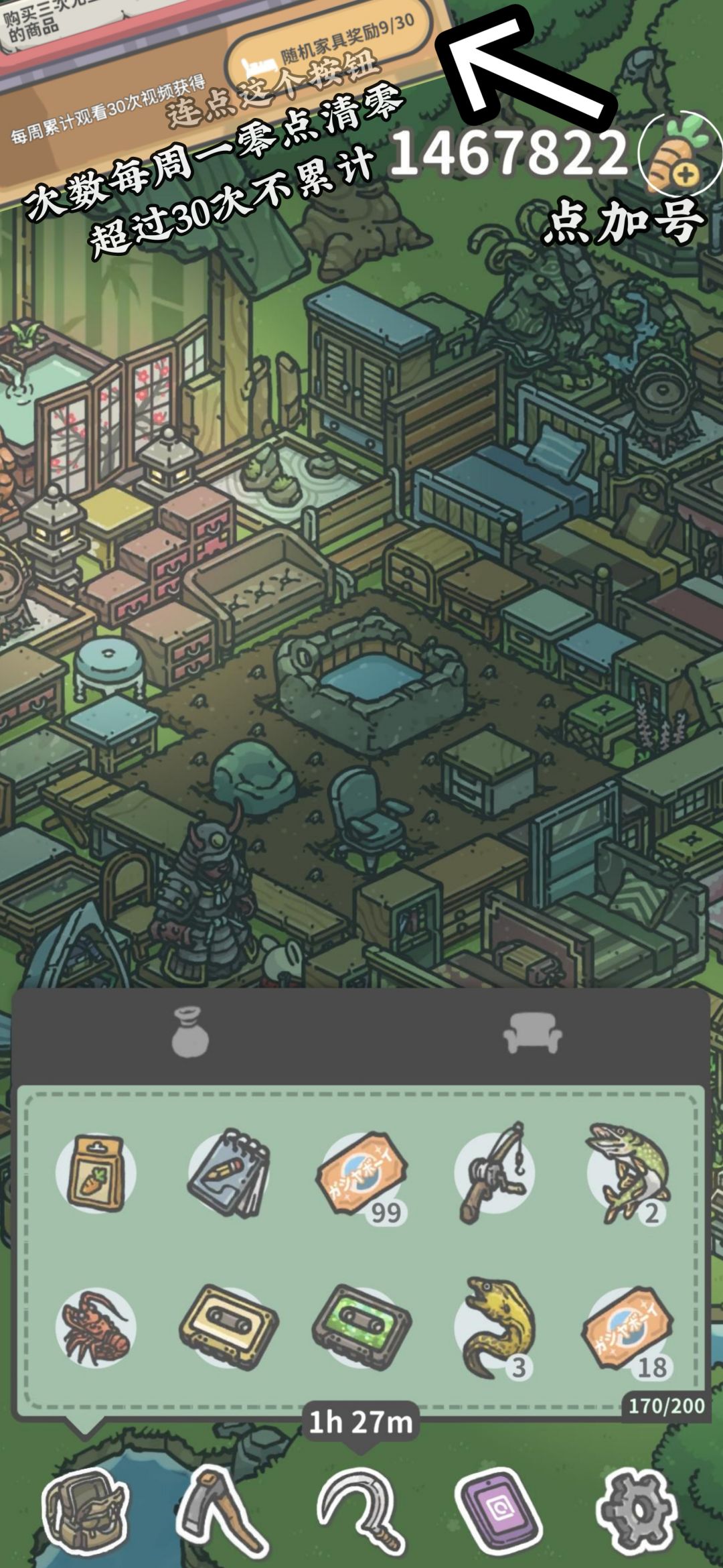 调系统时间(堆肥料)刷萝卜。安卓看30个广告用点击器刷家具卖更快一些~ios(国际版)中页面变为氪金商城,无法刷家具,看广告找家门口的推销员。