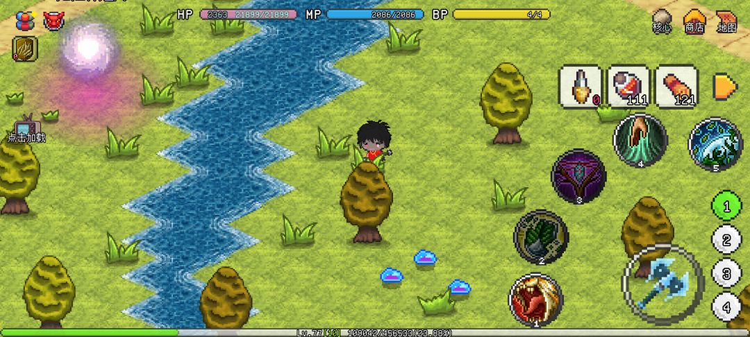 三胞胎史莱姆:在村庄桥的那边,过去就能看见,不是青影史莱姆哦。这三胞胎史莱姆不需要开核心,直接就能打,伤害有点高。