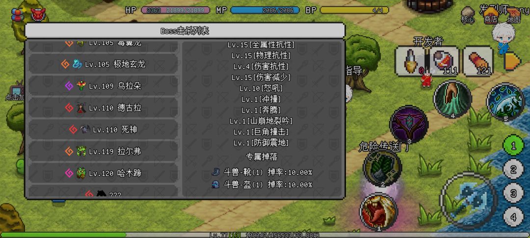 ,每个BOOS我都是一边过,10重,77级,直接10倍核心开启刷怪出BOOS。乌拉duo