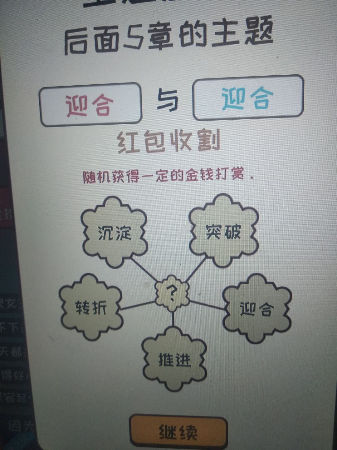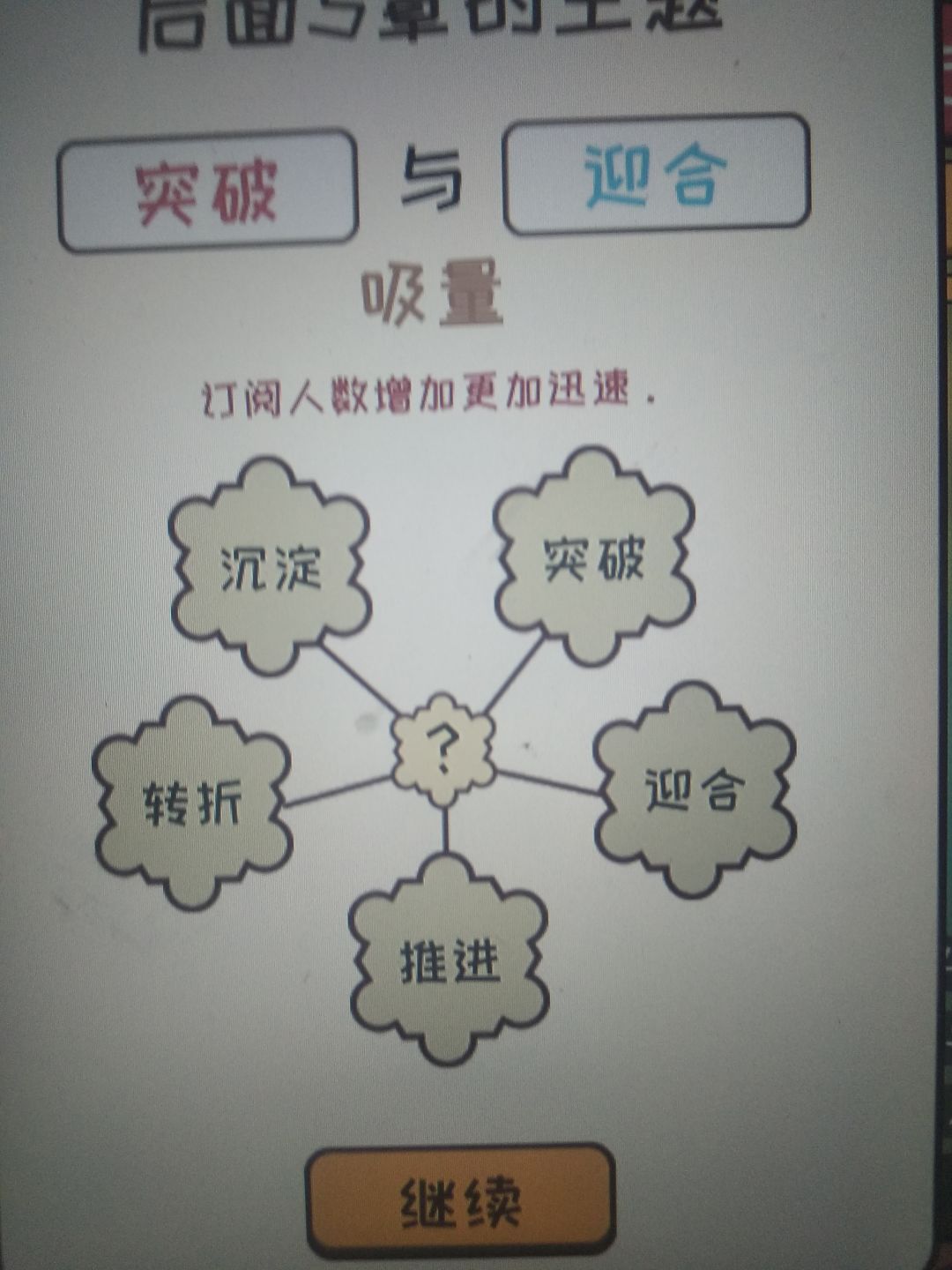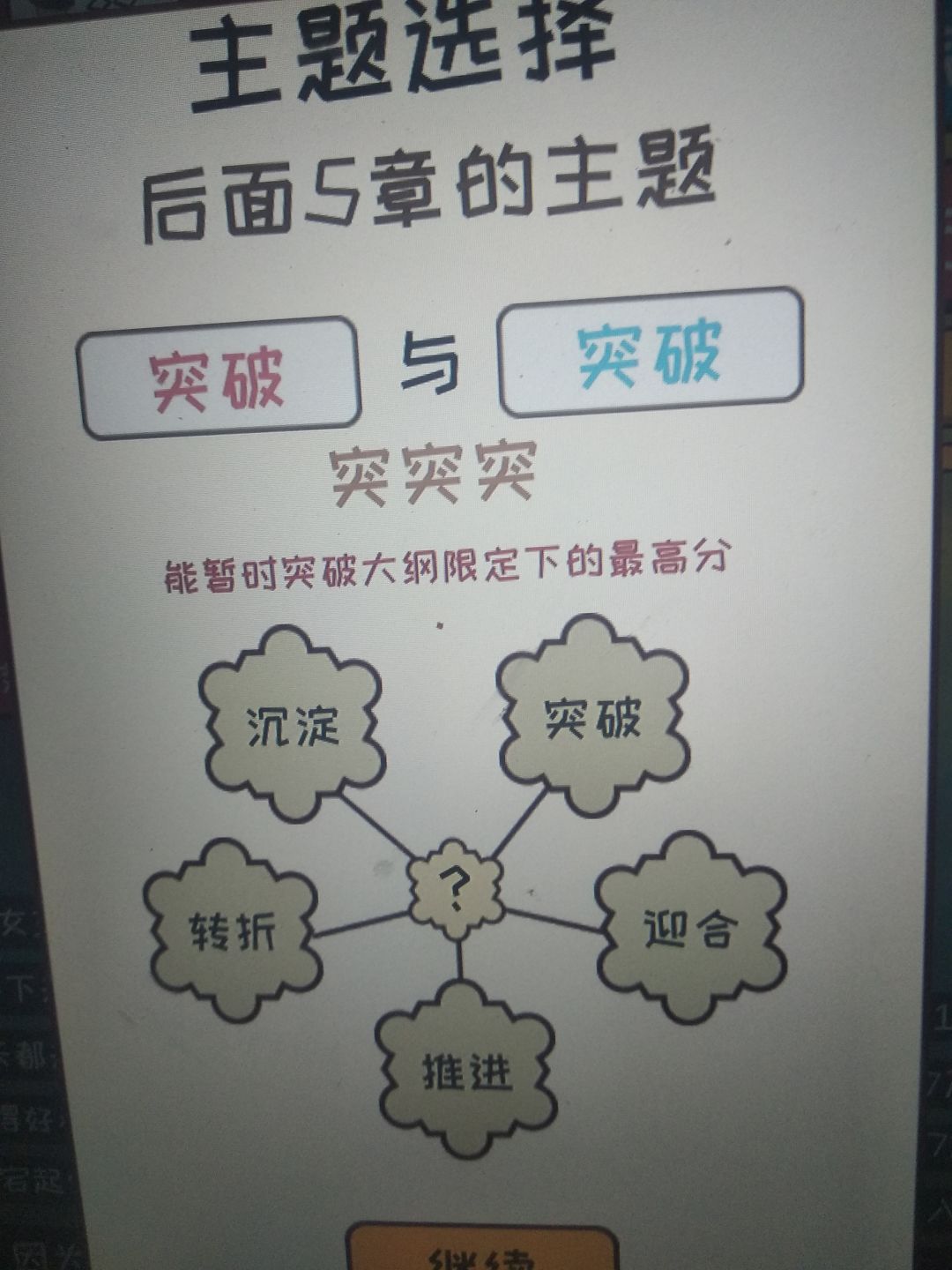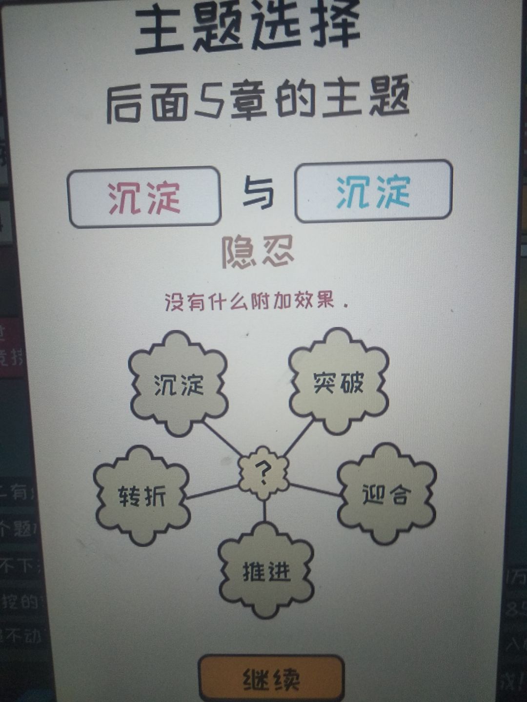 只要是很不错和太好了就行。很不错是7分,太好了是8分。一开始灵感从行动那给,更新最好全是大量灵感更新,这样可以快速刷到9分,然后更新到三十涨左右,然后一直0灵感刷钱到6.0完结,然后用来提升文笔速度之类的,这个无所谓,不过推荐先升一下速度,然后重新开一本,继续去最差的平台刷一波,然后可以去18k网站了,去之前记得基本属性大于50哦,然后就一直刷。对了一开始的3000元去购物买一台电脑。主题选择给你们发一下效果
