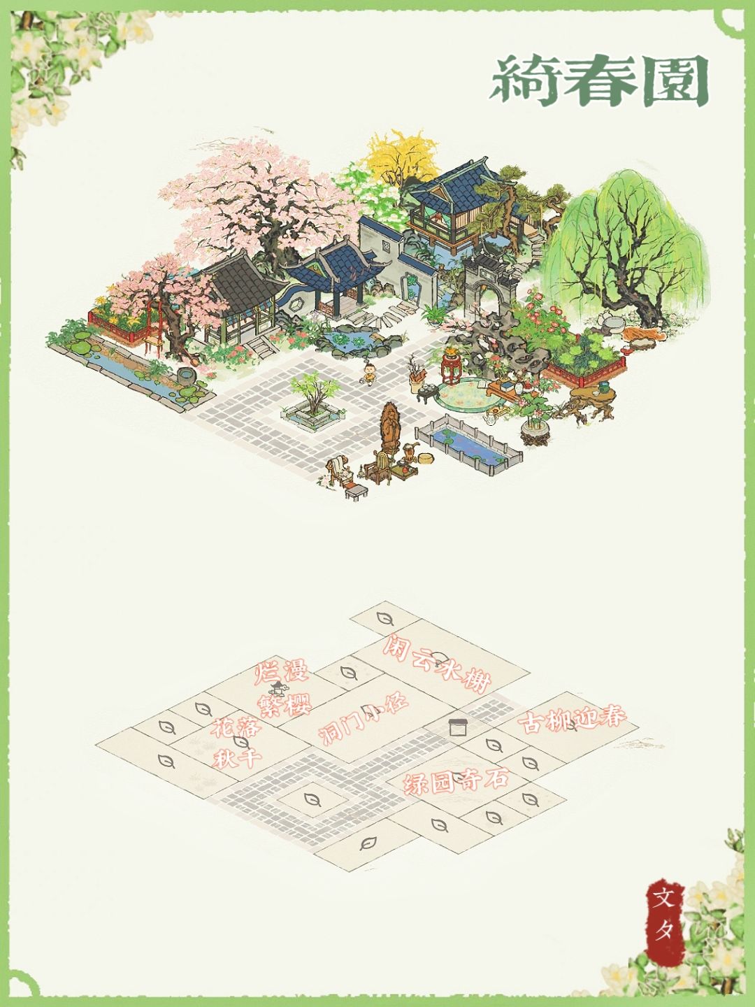 花落秋千 | 盆景茶歇 | 年画铺子 | 香粉铺 | 马厩