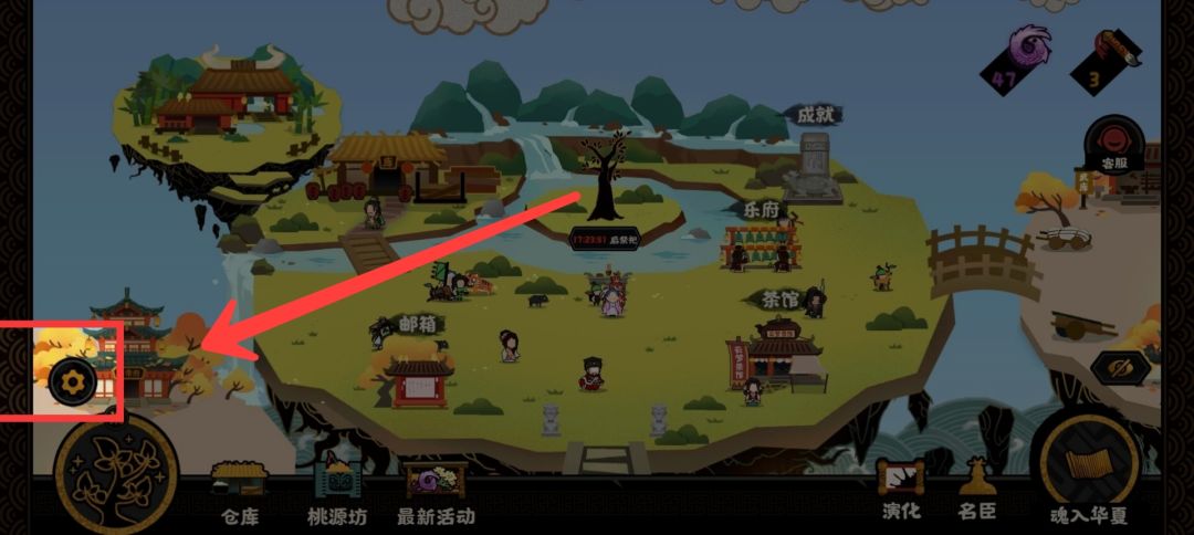 ⑴位置:点击山海界面左下角那个圆盘(有点暗金色,中间有棵树)