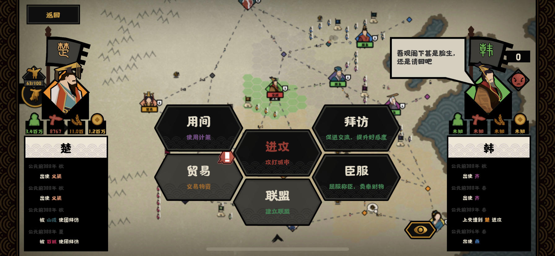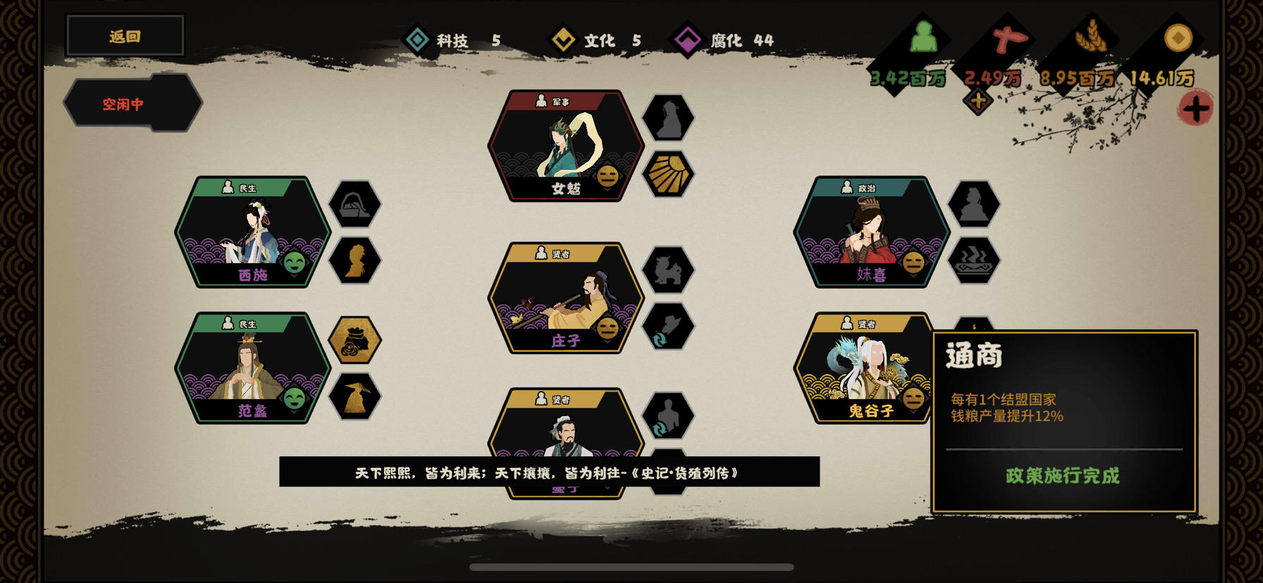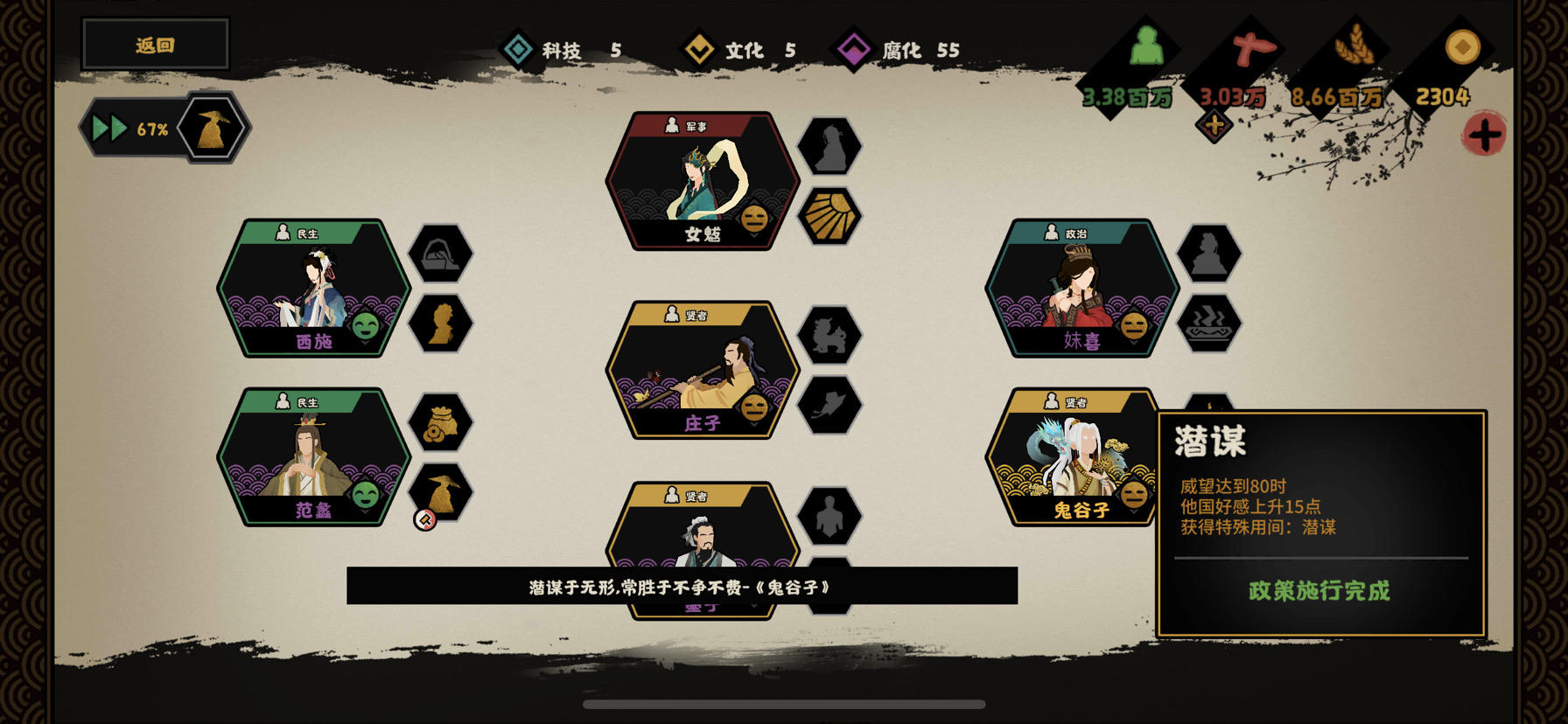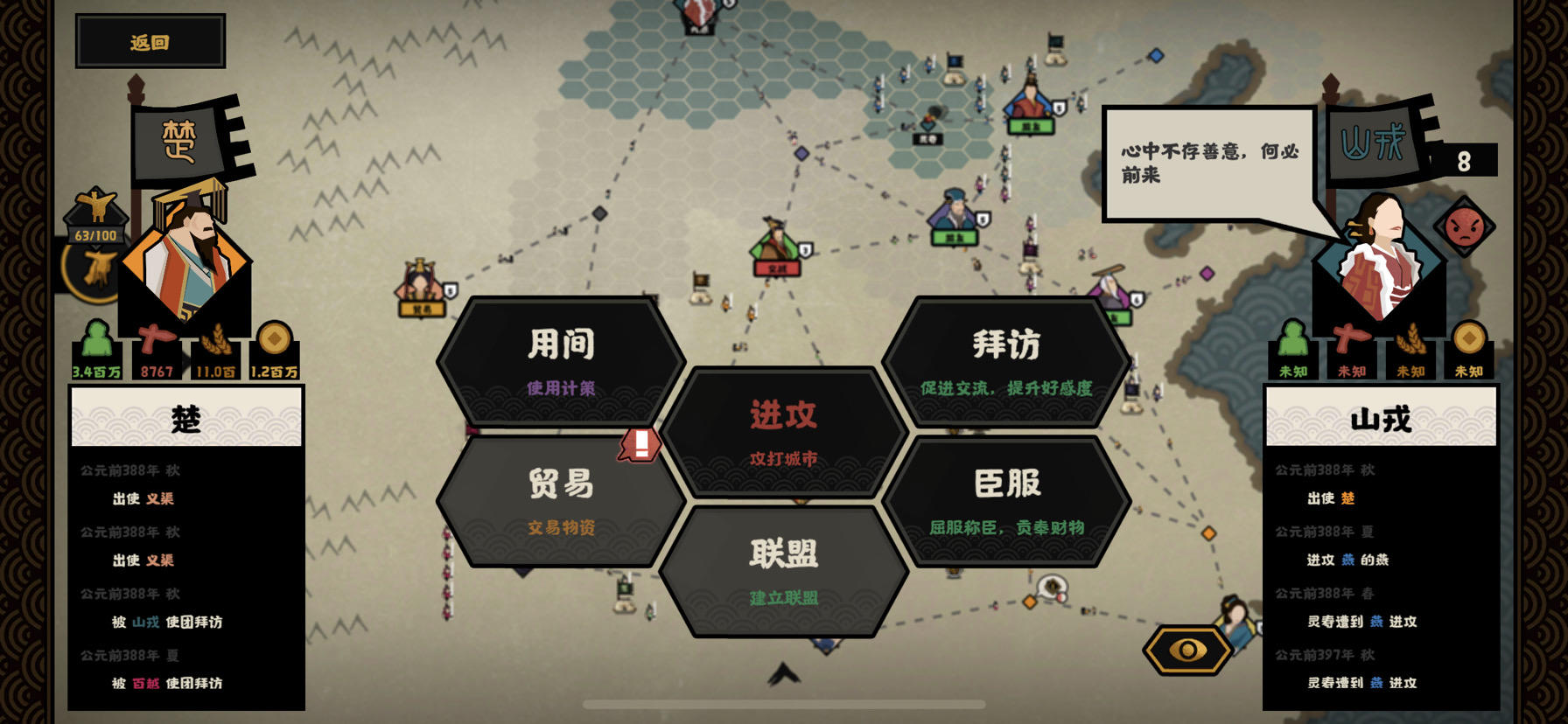 2)未曾交战过的山戎好感度为8(因为西施姐姐的那个加8效果)
