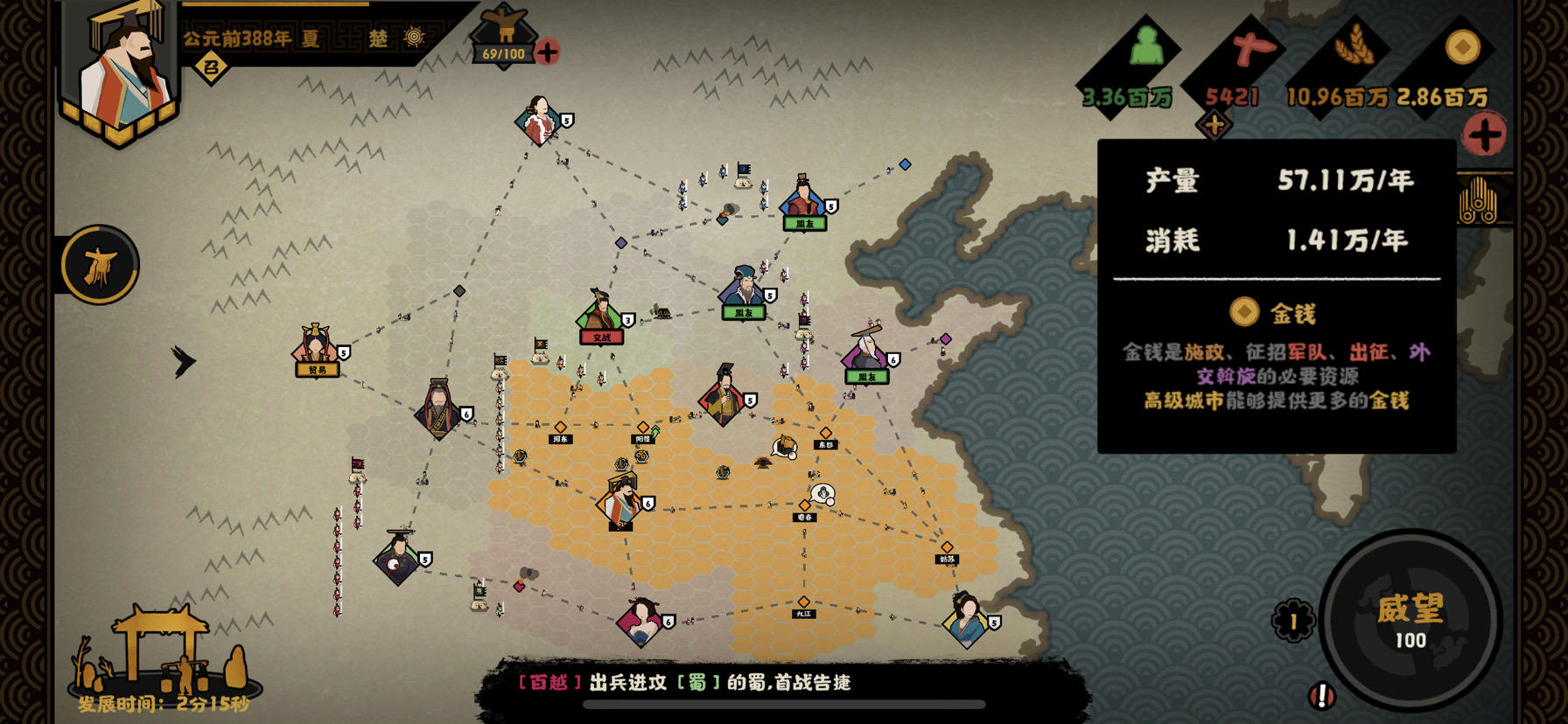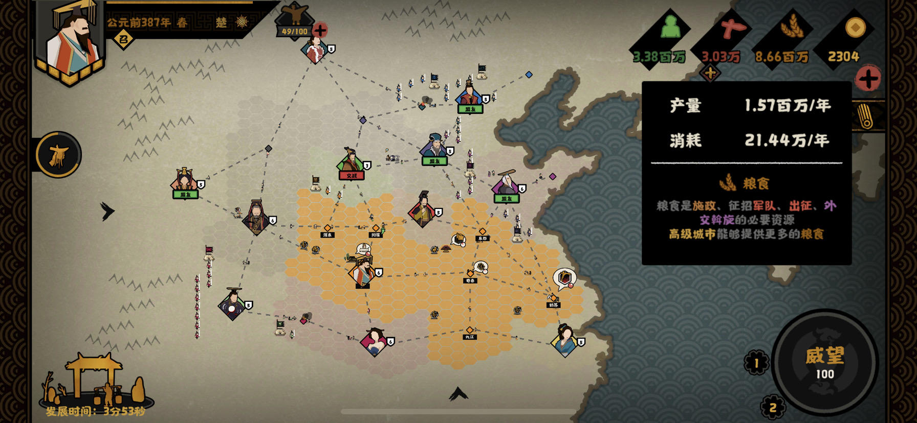 对应着义渠成为盟国后粮食产量(呃产量多了3w?)