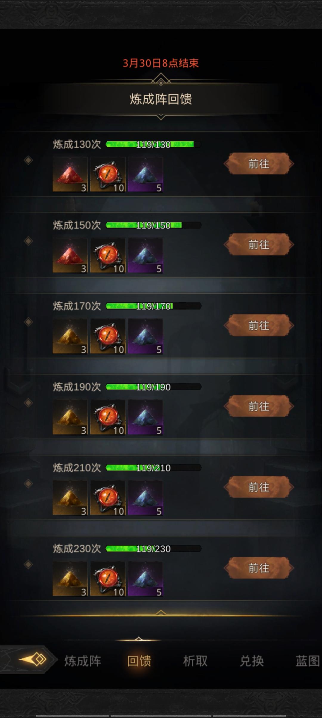 抽炼成阵之前不妨试试抽几发十连积攒欧气,十连如果出金了就抽十发炼成,做完日常然后下线15~30分钟后再上线重复流程,直到1~3发十连无金,少紫或蓝白较好,十蓝最佳。