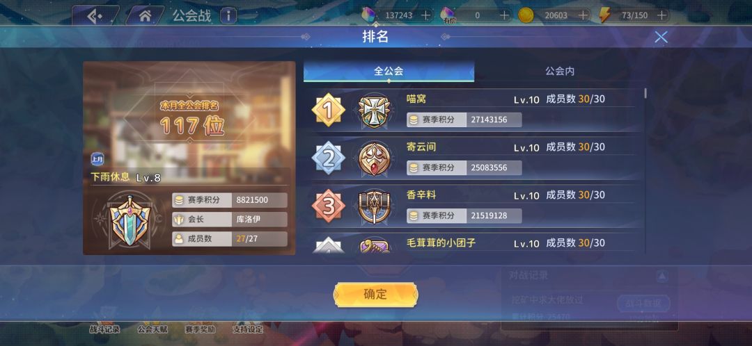 咸鱼公会下雨休息,保150冲100,公会战每日三刀出满,别摆烂,这期有35w分就可以了