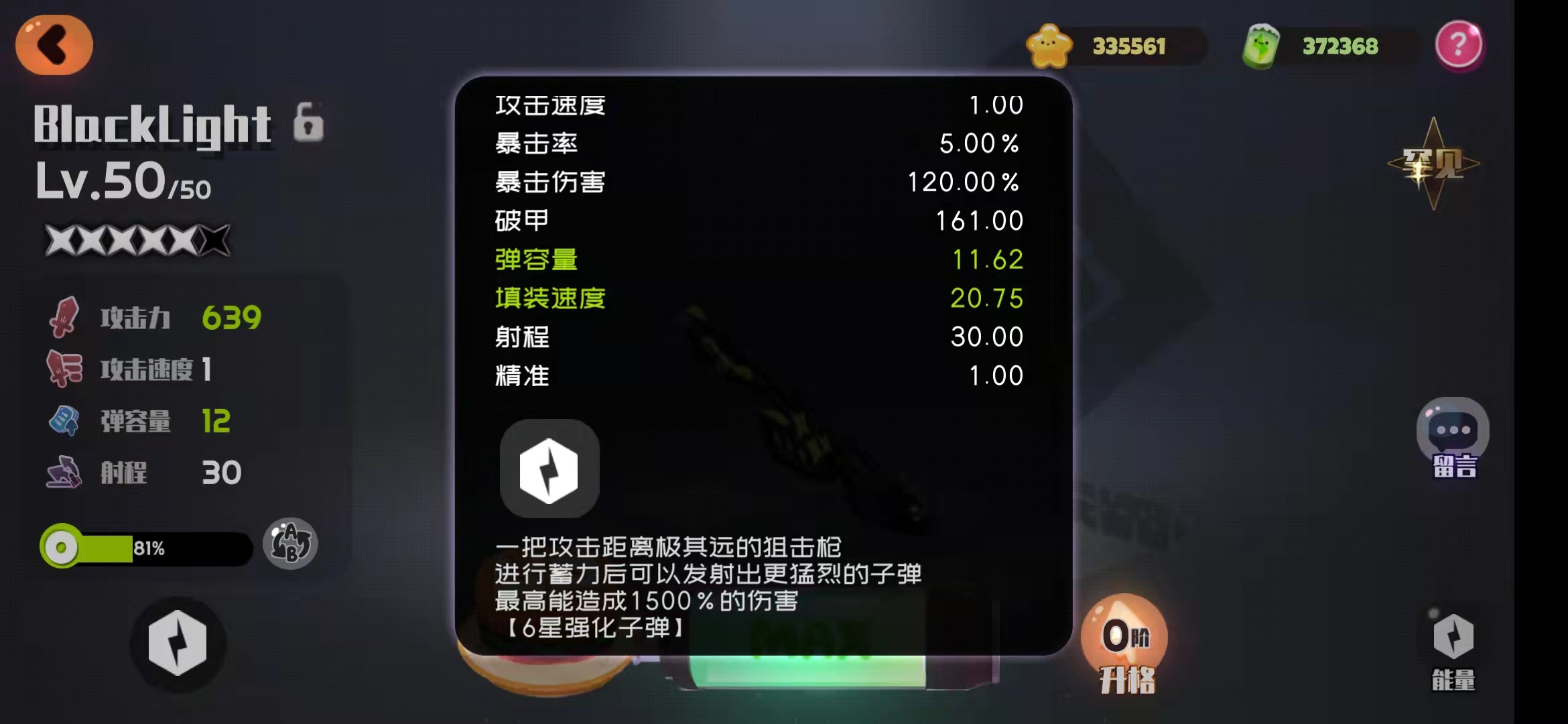 所以,武器的话,也推荐高倍率的,哪怕是攻击速度慢一点点,赌那一瞬间的爆发,也绝对值得!比如黑星~