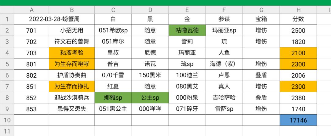 目前练度还比较低,角色还缺的比较多,一边抄作业一边根据自己的情况更改了配置,试了好多组合就这样吧。