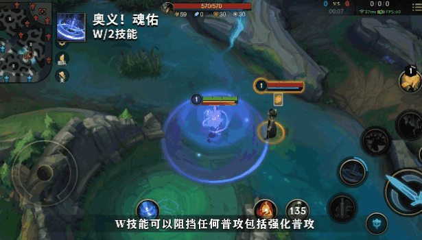 将魂刃送到我方英雄附近,生成一片可以格挡普通攻击的区域,拖动W(2)技能可以选择附近队友释放,秒按则会将魂刃拉回自己身边并释放技能。