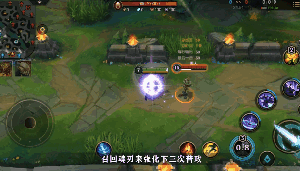 先用Q(1)技能,等Q(1)技能快CD时,用E(3)技能冲上去打完强化后的平A,这时Q(1)技能的CD又快转好,再接上三个强化后的平A!理想状态当然是两次的Q(1)技能都能让魂刃穿过敌人。
