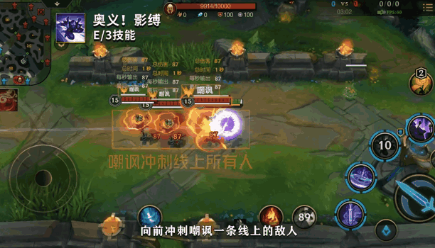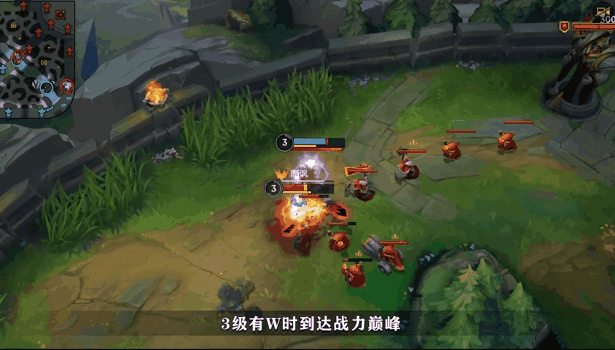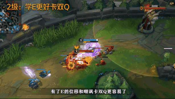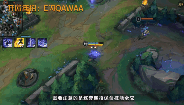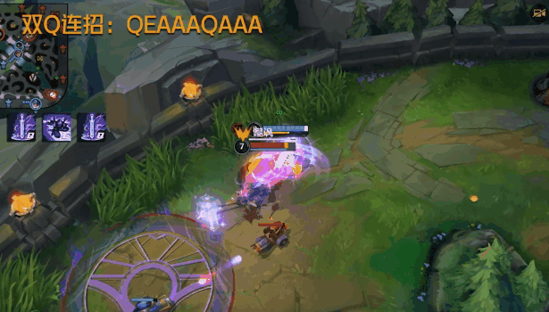 E(3)技能的位移和嘲讽能让我们更好地用出上面介绍的双Q(1)连招,掌握主动权,向敌人发起猛烈的进攻吧!