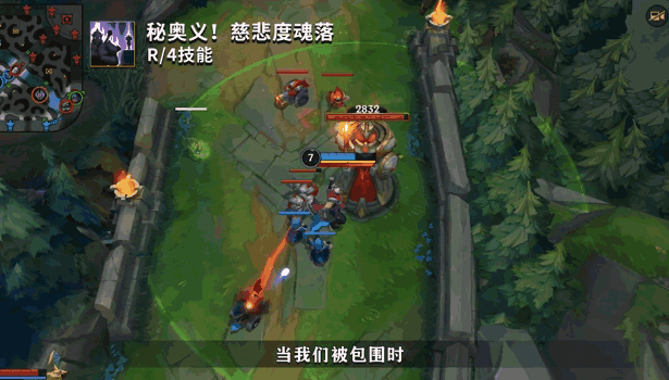 虽然R(4)技能在我方英雄生命值较低时会提供更多护盾值,但该出手时就出手,坐视自家脆皮英雄遭到集火,很可能错失传送切入的好时机。