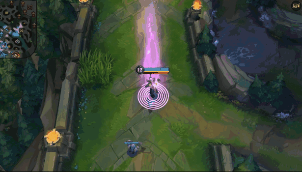 E(3)技能拥有不错的施法距离,但飞行速度较慢,所以要尽量避免在极限距离下使用。