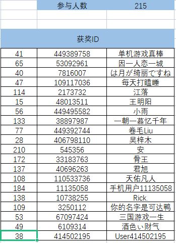 各位玩家大大期待已久的欧皇降临活动获奖名单。。。。。公布啦!!!!(≧ω≦)/