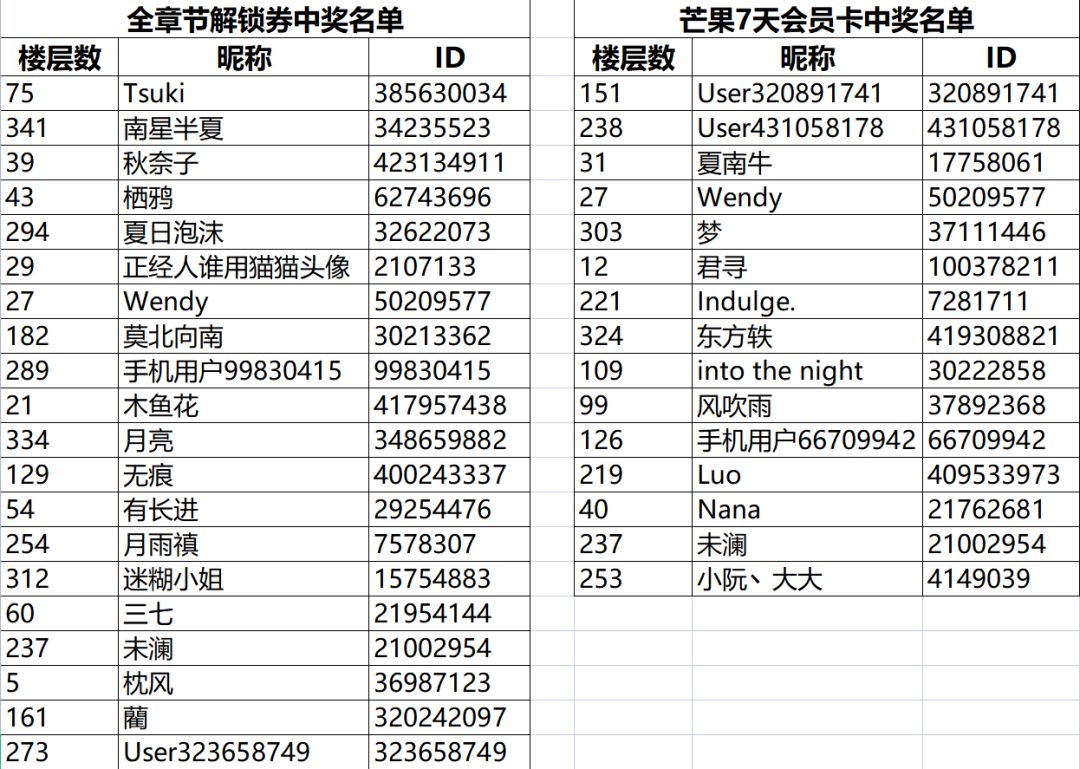 经查验,中奖小伙伴的名单如下——