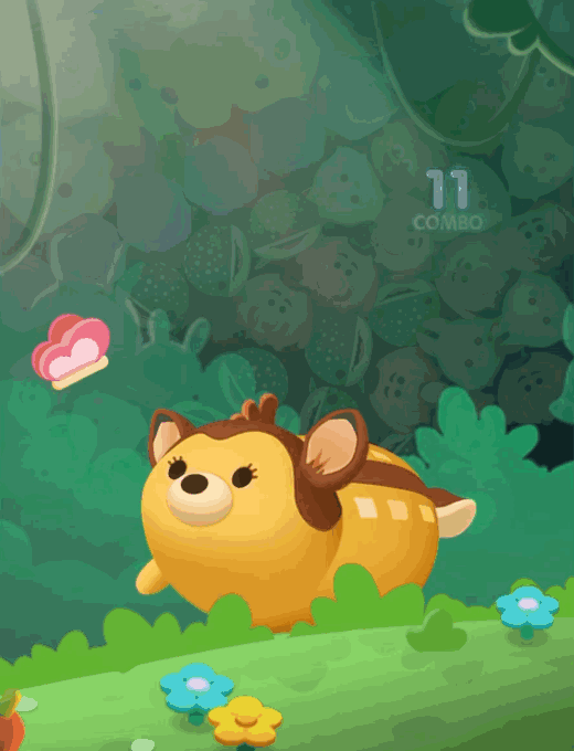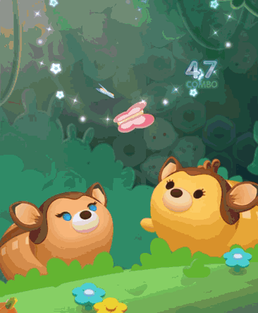在每一次闯关中,斑比将会释放出三类不同的技能。第一次释放技能时,斑比追逐着蝴蝶出现,并造成“—”形状的消除;