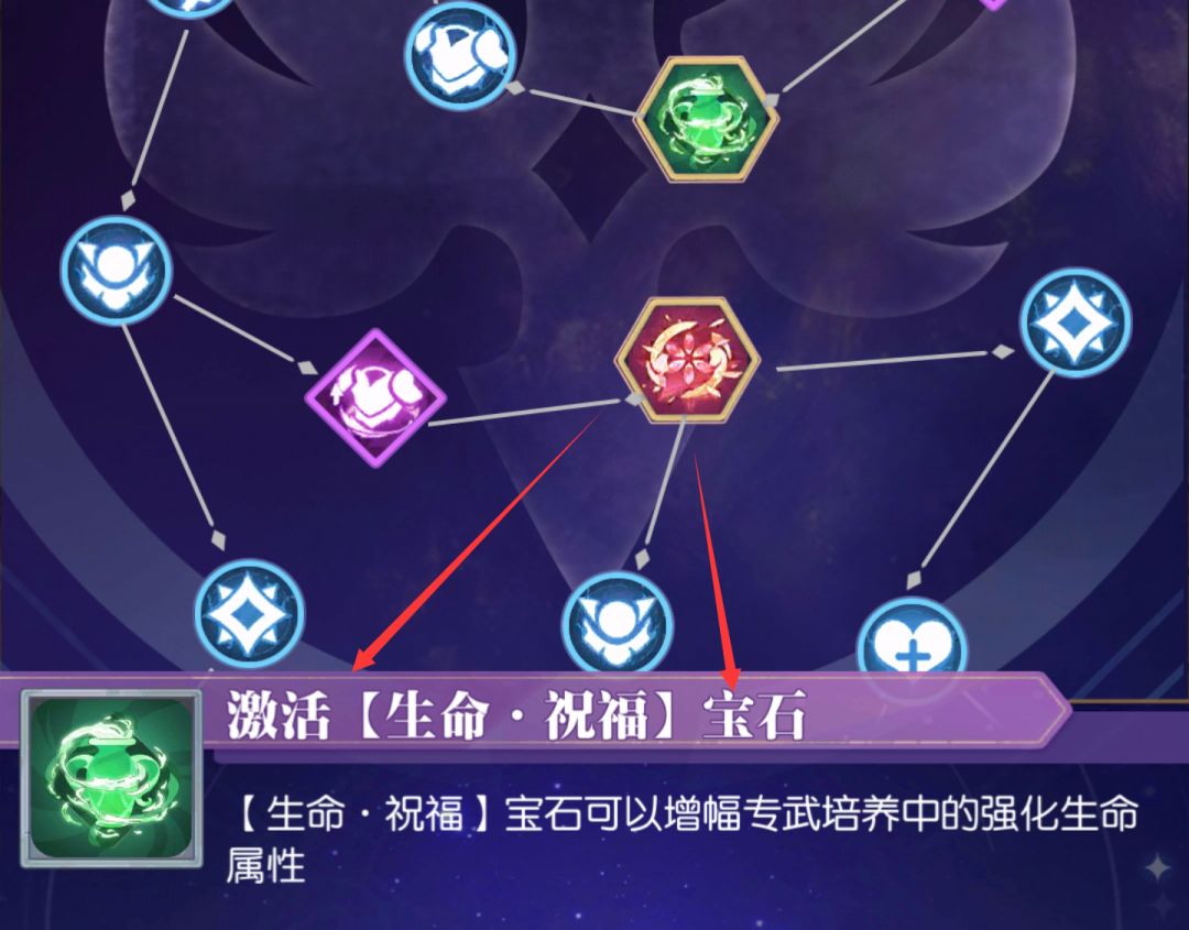 第二个激活的便是祝福宝石,备忘录活动商店兑换的从战神到爱神就是祝福宝石天赋的培养材料。