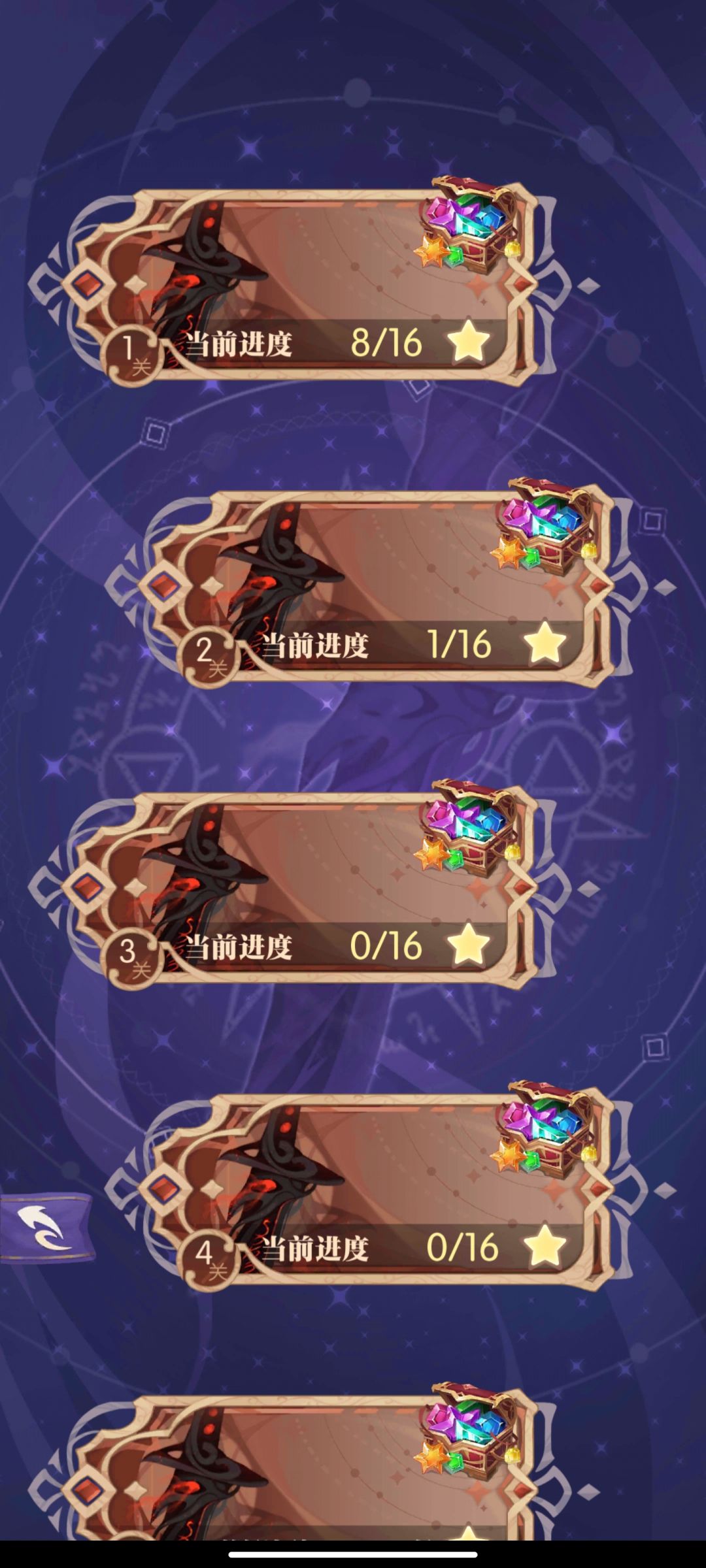 乐园一共分为十关,每关有不同难度的deBUFF即负增益,选择的debuff越多,每关星级越高,通关以后获得的奖励越高,同时永久增加乐园的日常产出。