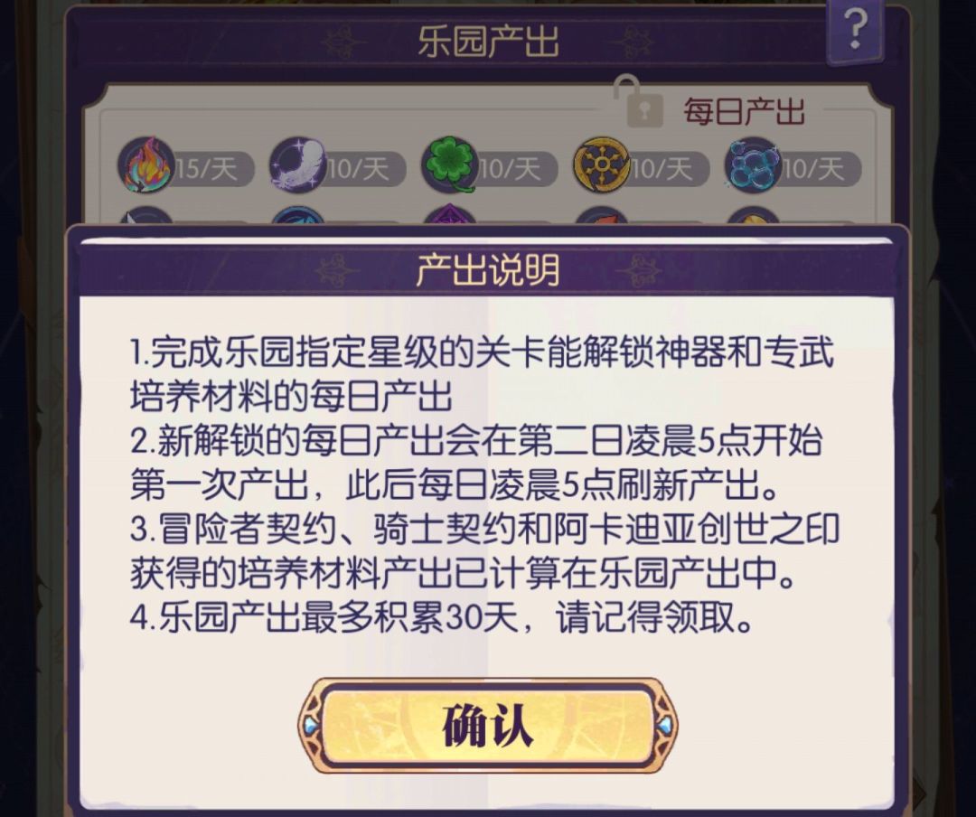 乐园日常产出界面及产出说明