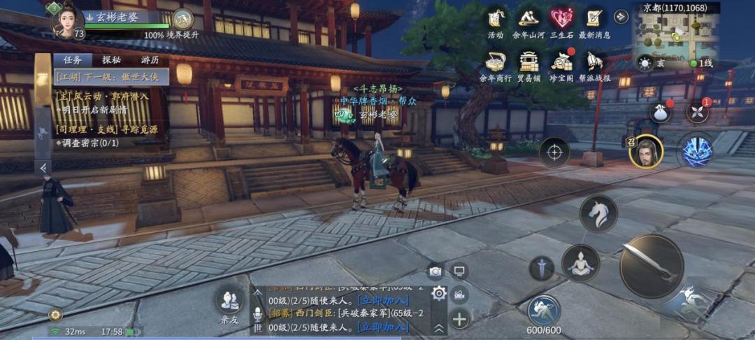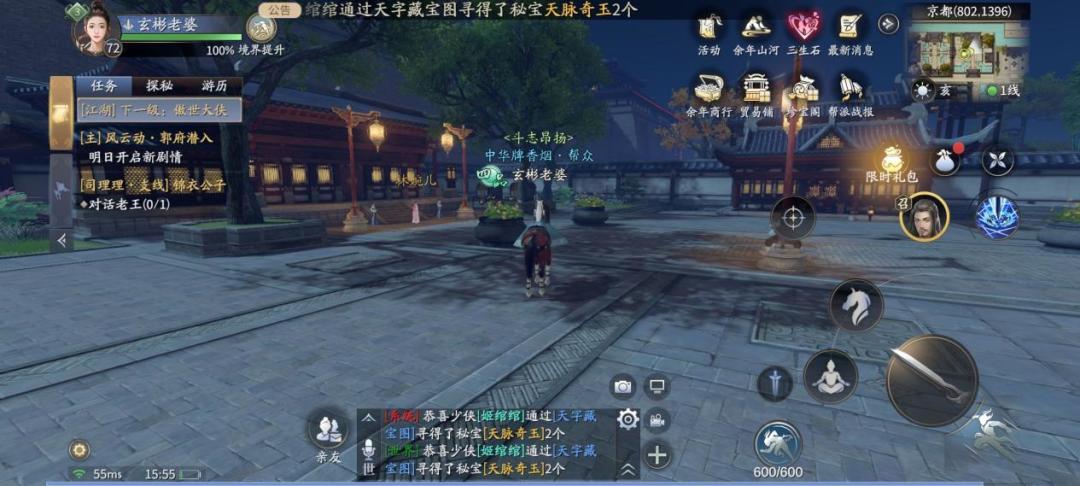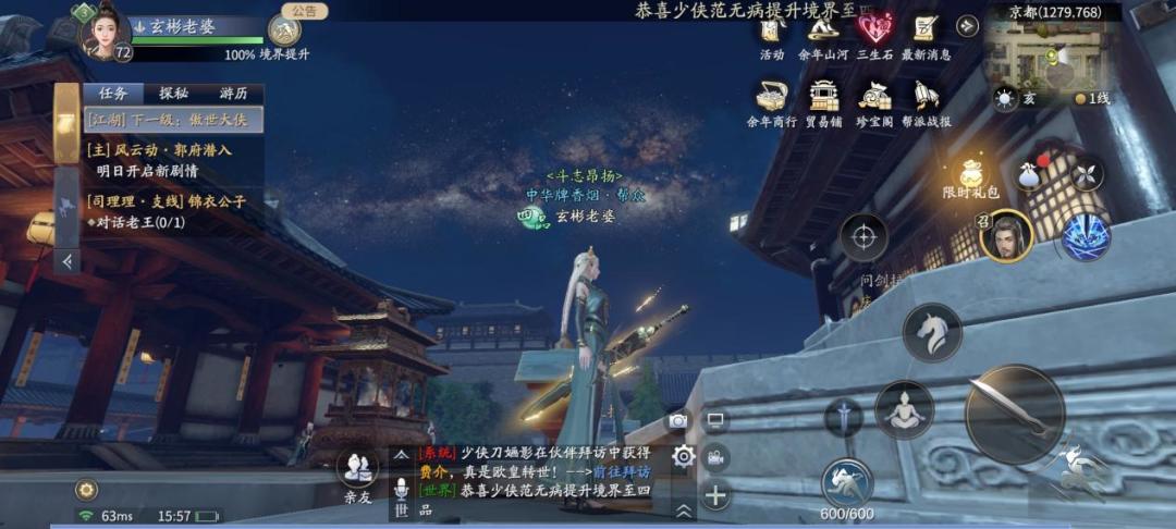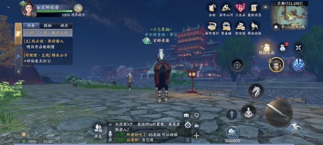 今日走累了,校花密探带少侠你在京都四处溜达,可让天脉者们有所收获?今日便先到这里,待我回回血,再带少侠游览下一个地图!