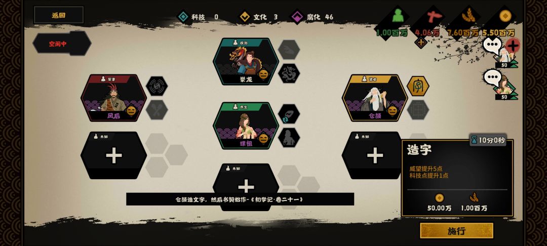 还加五点威望和五点民心