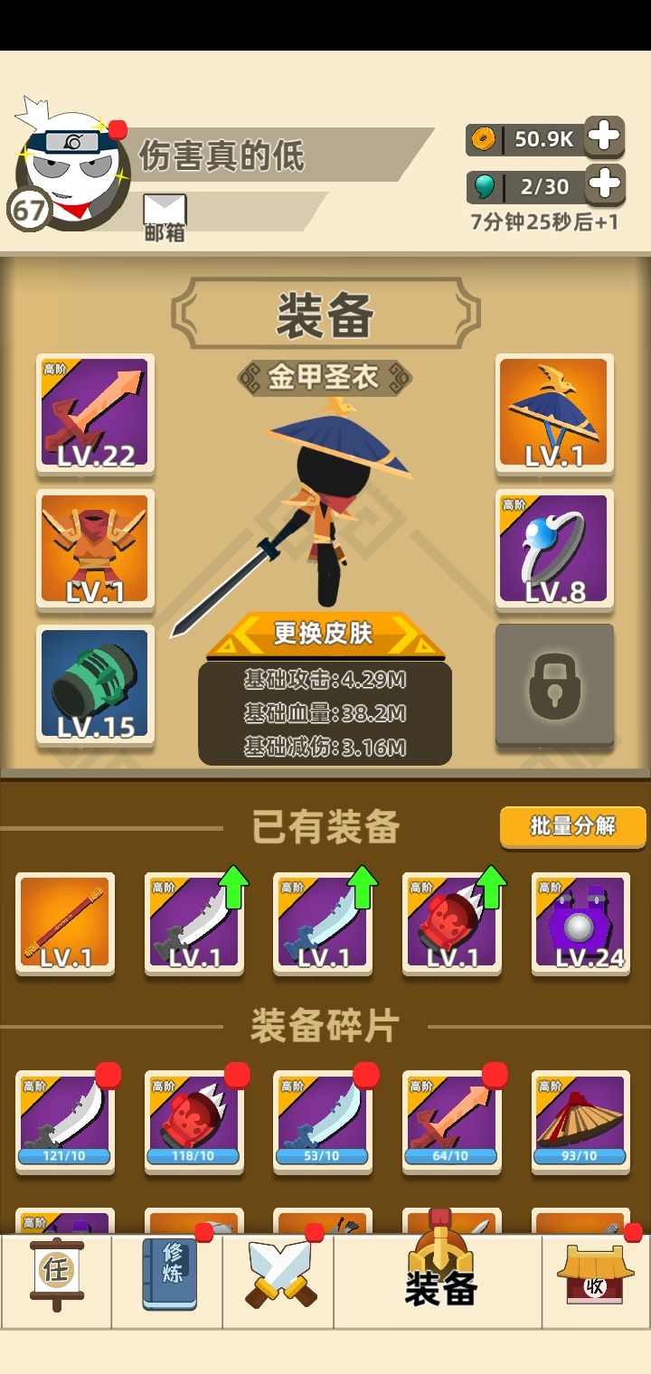 这游戏刚出的时候玩了一段时间,要实名删了,现在下回来发现这个武器好刮痧呀!打个弓箭手都要打半天,内功什么的平凡的我都参悟不了😂😂