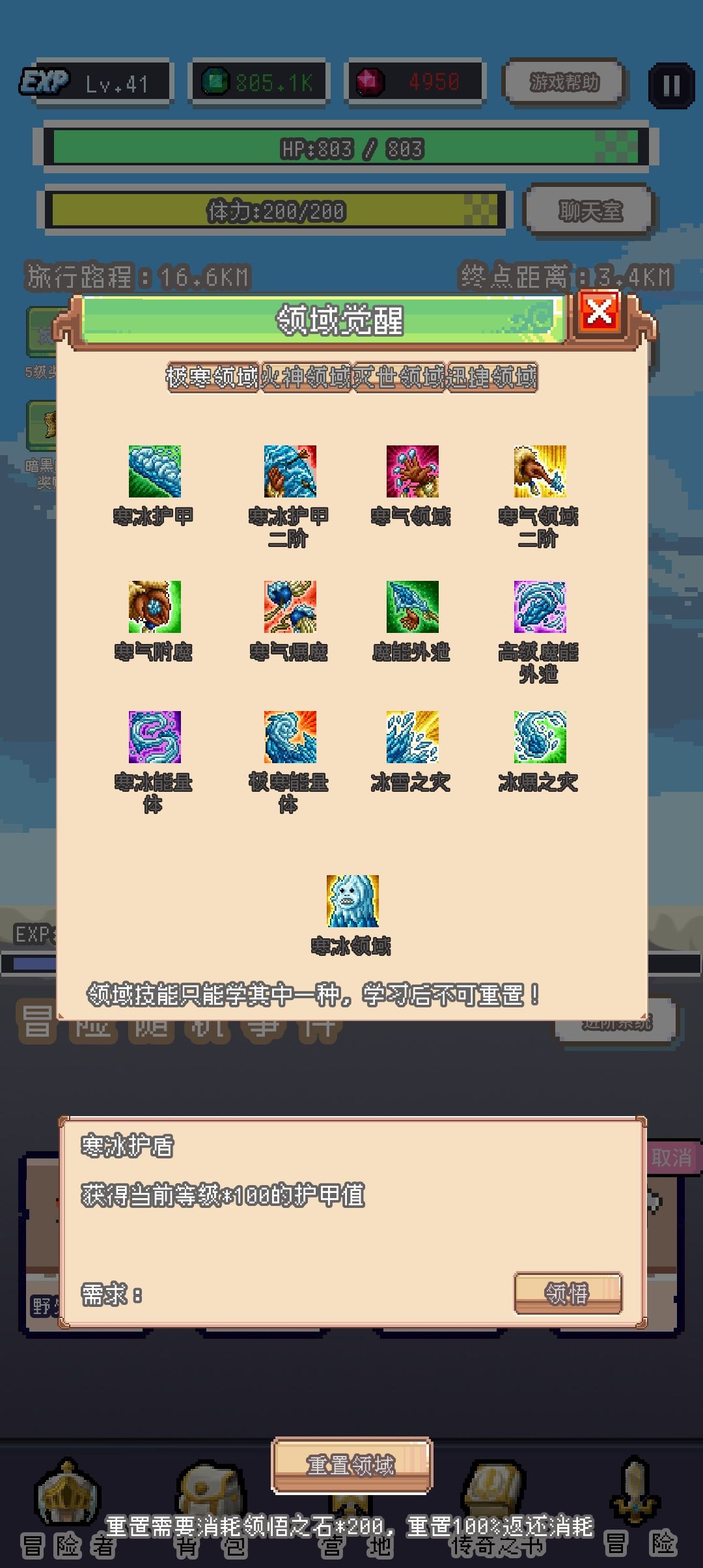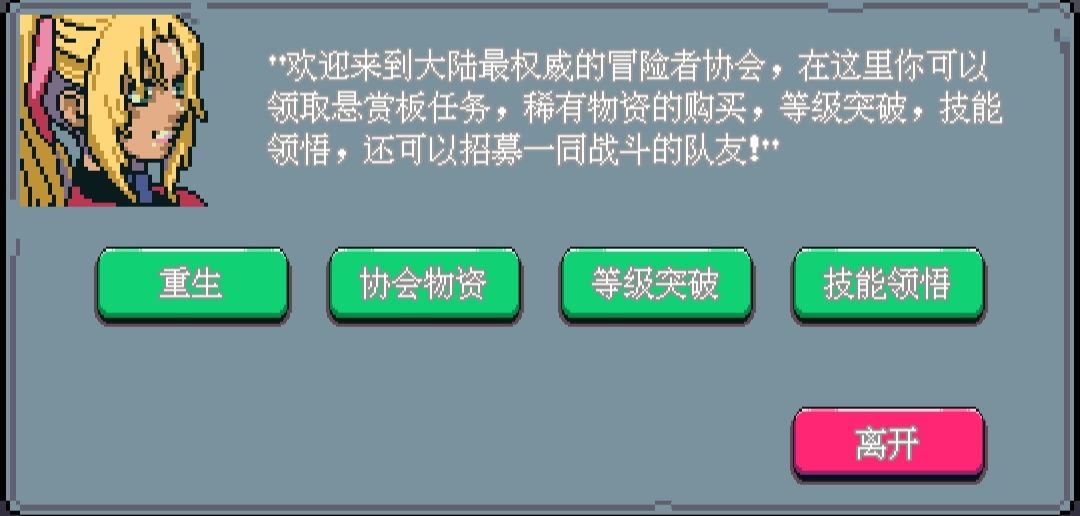 人物技能:开关技能和升级技能,技能通过在冒险家协会消耗技能点学习获得